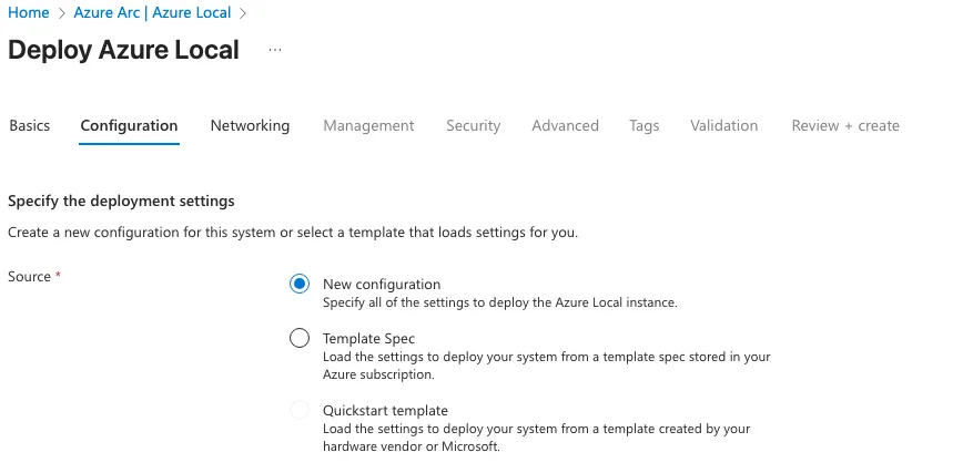 Browsing to https://portal.azure.com/#view/Microsoft_Azure_ArcCenterUX/ArcCenterMenuBlade/~/allClusters will show this is empty. Click on create and choose for Azure Local Instance.