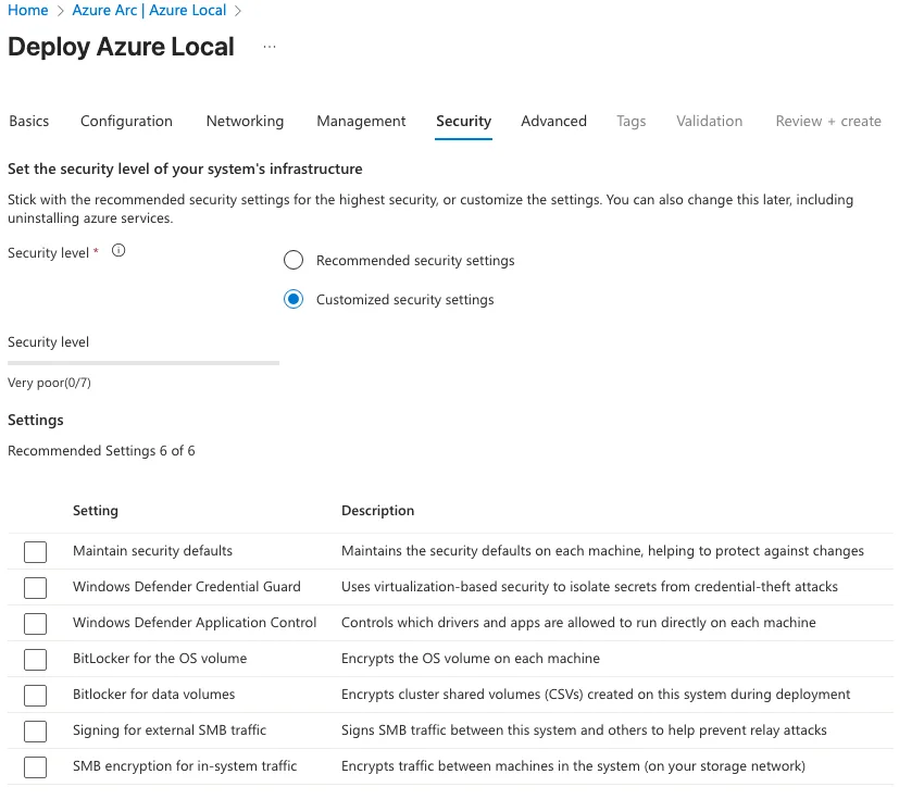 In this scenario, I chose to temporarily disable the security settings. This decision was made to ensure that the deployment process could proceed without interruption and to allow me to apply the required security configurations manually afterward. Disabling these settings also helps accelerate the initial deployment, making it easier to validate the environment before enforcing stricter controls.