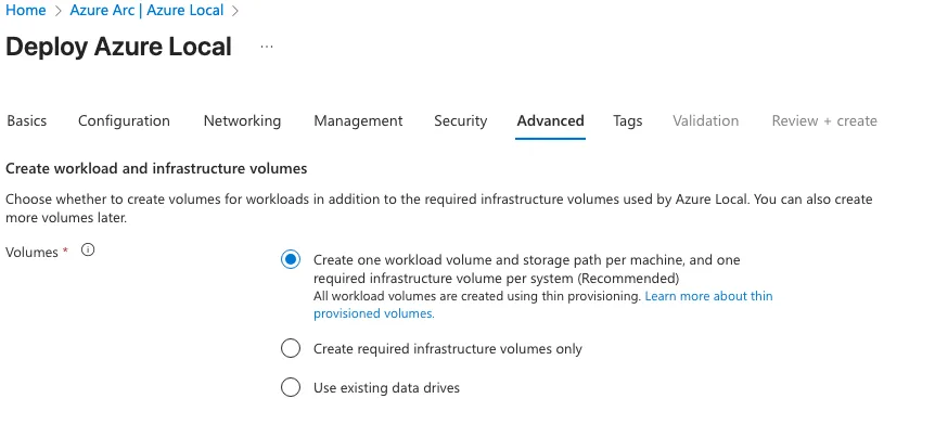 To simplify the configuration and ongoing management, I opted to use a single workload volume and storage path per machine. By standardizing the layout in this way, all attached disks are automatically aggregated into a unified storage pool. This approach allows the cluster to treat the combined capacity as one cohesive storage unit, streamlining provisioning and ensuring consistent performance across the environment.